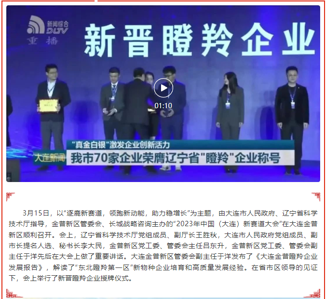 大連恒亞儀器儀表有限公司作為瞪羚企業(yè)代表參加授牌儀式!